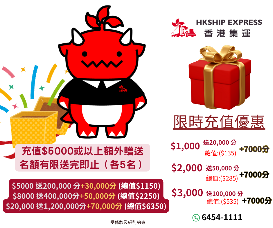 提示: 可選用香港集運LOGO 上的3塊花瓣